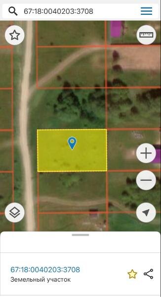 Название: Земельный участок с кадастровым номером 67:18:0040203:3708 площадью 1500 кв.м., относящийся к категории земель населенных пунктов