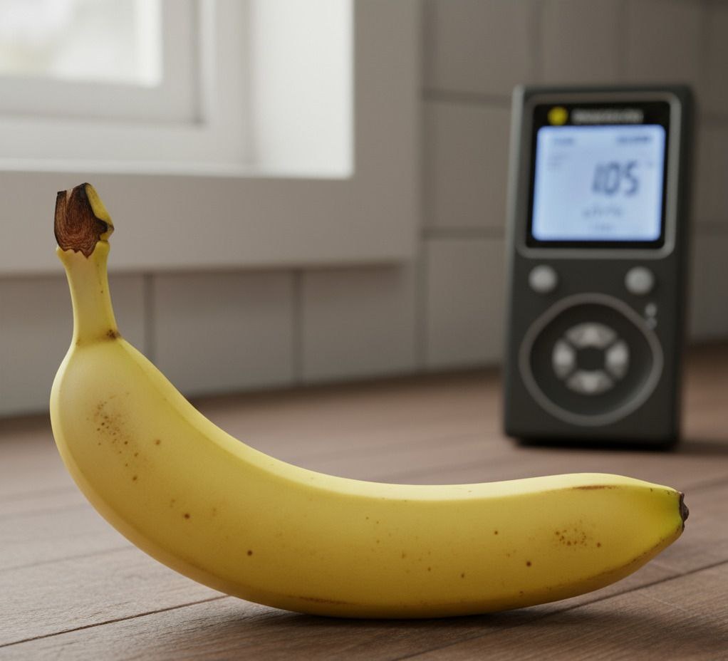 Когда слышишь словосочетание "ядерный банан", в голове возникает образ чего-то опасного — будто этот фрукт готов светиться в темноте. На самом деле это всего лишь шутливое название бананов в кругу физиков. Да, бананы действительно немного радиоактивны. Но не спешите паниковать — мы расскажем, почему это совершенно безопасно, и как банан может помочь понять природу радиации. Радиоактивный калий В каждом банане содержится калий — жизненно важный элемент, необходимый для работы мышц, сердца и нервной системы. Но калий не такой уж простой металл. В природе он существует в трёх изотопах: Вот именно калий-40 — радиоактивный. Он распадается, испуская бета- и гамма-излучение. Причём делает это постепенно: период полураспада у него — 1,25 миллиарда лет. В одном среднем банане содержится примерно 450 мг калия, из которых доля калия-40 — около 0,05 мг. Этого достаточно, чтобы банан излучал радиацию, но настолько слабую, что её можно зафиксировать только с помощью чувствительного счётчика Гейгера.