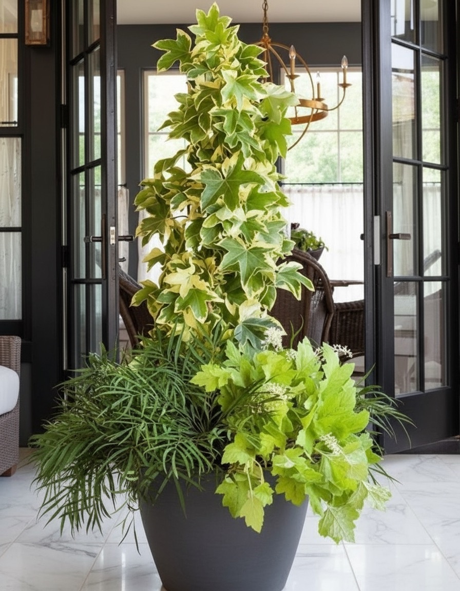 Привет , друзья 💚 Сегодня хочу рассказать об очень интересном растении и уходе за ним ☺️ Фатсхедера – это гибридное растение, полученное в результате скрещивания фатсии японской и плюща обыкновенного.🌱 Чаще всего мы встречаем название «Фатсхедера Лизе» - в честь братьев, которые создали этот гибрид. Давайте разберемся, как создать комфортные условия для пышного роста. Фатсхедера предпочитает яркий рассеянный свет или полутень. Хотя может расти и в тени, но при этом листья становятся менее пестрыми и теряют декоративность. А вот яркие солнечные лучи могут спровоцировать ожоги на листьях. Рекомендуемый температурный режим летом в пределах +20…+22 °C, а зимой — от +10 до +15 (но не ниже +7 °C). Цветок плохо переносит сквозняки и резкие перепады температур. Фатсхедере нужна умеренно высокая влажность. Растение лучше не размещать вблизи с отопительными приборами. Поливаем после того, как верхний слой грунта начал подсыхать, если речь о летнем времени. Зимой даем грунту просохнуть