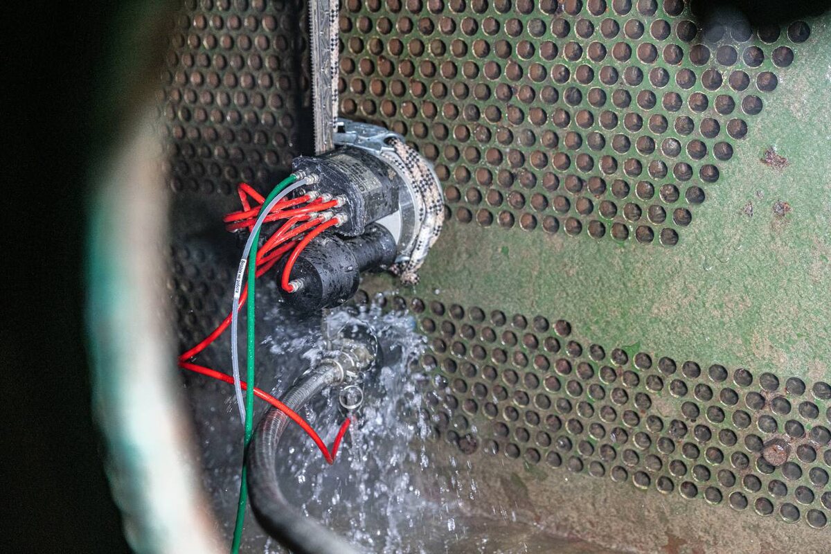 Сначала сотрудник вручную устанавливает робота внутри водяной камеры конденсатора, наводит его на нужную группу трубок и включает в автоматический режим. Дальше робот самостоятельно перемещается по направляющей, закрепляется на теплообменные трубки и тщательно очищает их мощным напором воды. После завершения одного участка переходит к следующему.