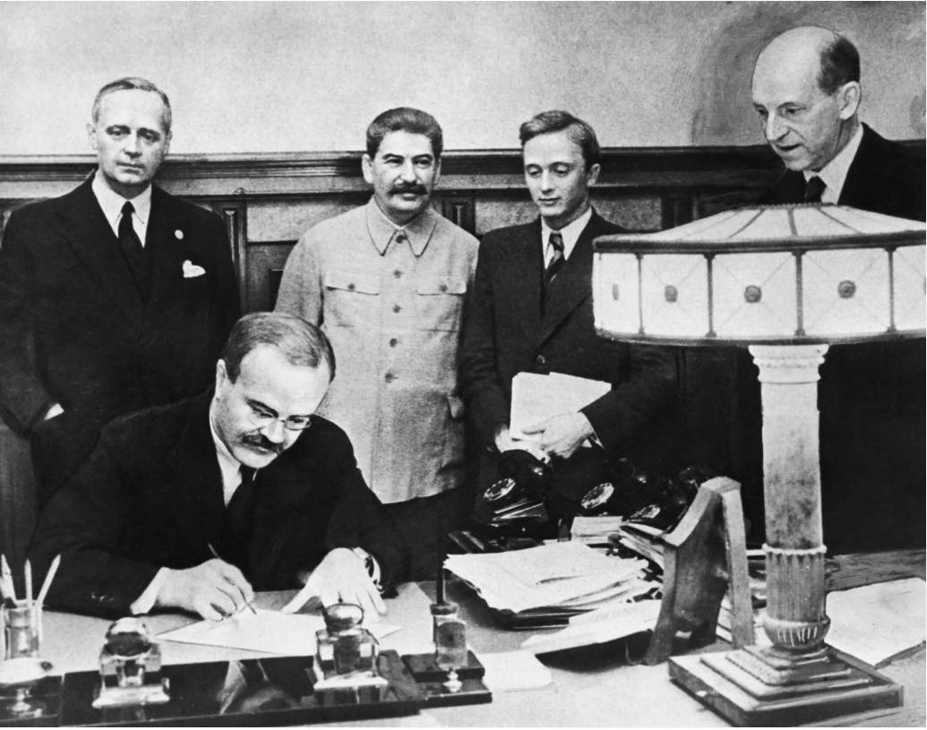 23 августа 1939 года Советский Союз и Германия подписали договор о ненападении, известный также как «Пакт Молотова-Риббентропа». Документ состоял из двух частей: официального соглашения и секретного протокола, который определял сферы влияния обеих сторон в Восточной Европе. Советскому руководству, стремясь избежать войны на два фронта, было важно выиграть время для укрепления обороны и подготовки армии. Договор позволял оттянуть начало военных действий против Германии, давая возможность укрепить вооруженные силы и подготовиться к возможному конфликту. Для Германии подписание пакта открывало путь к началу Второй мировой войны, позволяя начать военные действия против Польши без риска столкновения с СССР. Таким образом, каждая сторона преследовала собственные цели, исходя из соображений национальной безопасности и геополитической стратегии. Официальная часть документа содержала обязательство обоих государств воздерживаться от нападения друг на друга и соблюдать нейтралитет в случае конфл