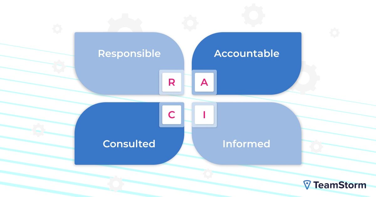 Используйте таблицу, где по строкам идут задачи, а по столбцам — члены команды. В ячейках проставляются буквы R (исполнитель), A (ответственный), C (консультант) и I (информируемый).
