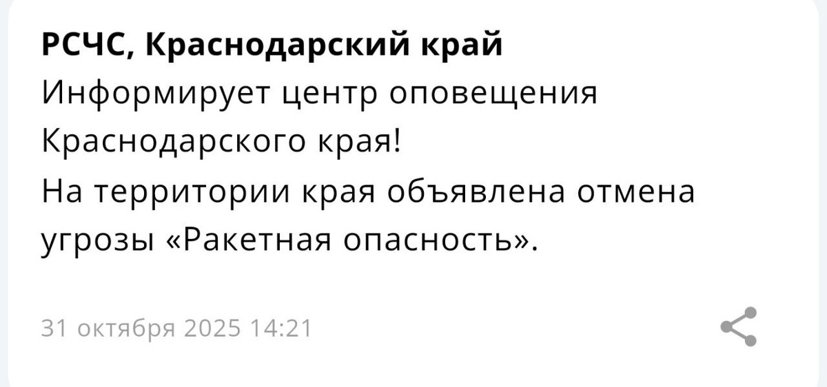 В ответ на пост Отмена «Ракетной опасности» – РСЧС 💜 Мы в MAX 👍 ТК Краснодар | Подписаться