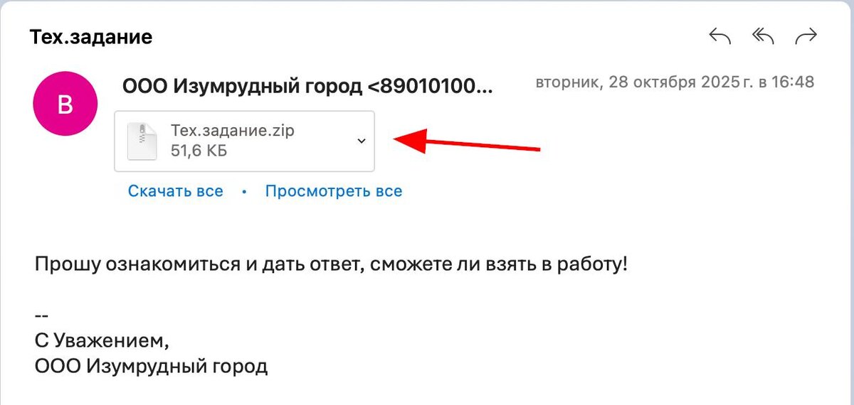 Осторожно, злоумышленники! Хорошая попытка заразить мой комп вирусом. Будьте внимательнее к тому, откуда вам присылают письмо и что находится во вложении. Прислали "ТЗ" на просчет в архиве, открываю архив, а там файл с расширением .hta. Файл с расширением .hta — это HTML Application, то есть исполняемый файл Windows, который запускается через Internet Explorer или Windows Script Host. ⚠️ Важно: Такие файлы могут быть опасны, потому что они выполняют скрипты с системными правами (например, могут читать файлы, изменять реестр, скачивать что-то из сети и т. д.). Если файл пришёл по почте, из чата или не из надёжного источника — ни в коем случае не запускай его двойным кликом. Так как у меня Mac, вирус для меня не страшен, но если бы открыл на Windows, то были бы проблемы. Будьте осторожнее друзья. 👉 Александр Андреев. Подписаться.