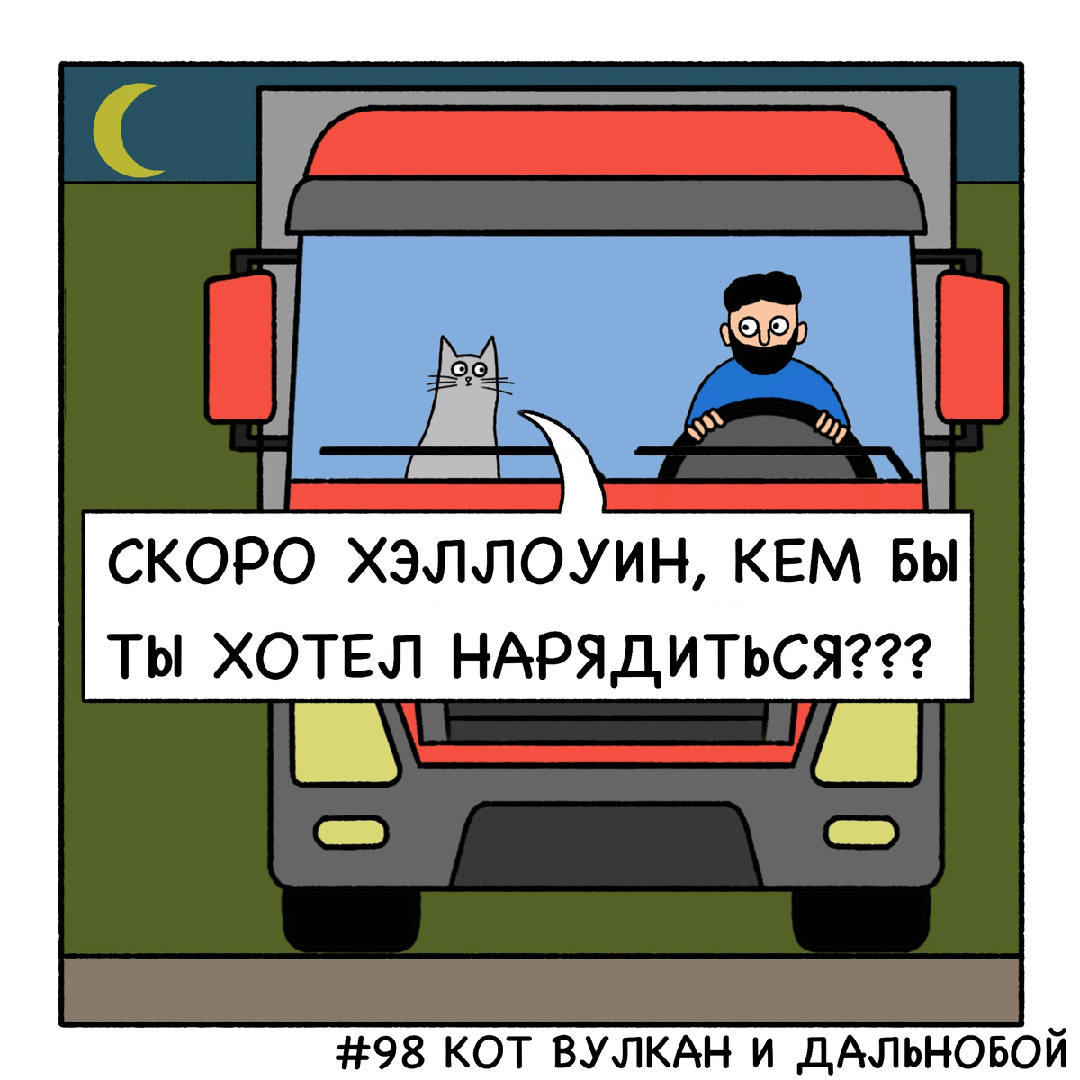 3 хэллоуинских комикса «Кот Вулкан и дальнобой»