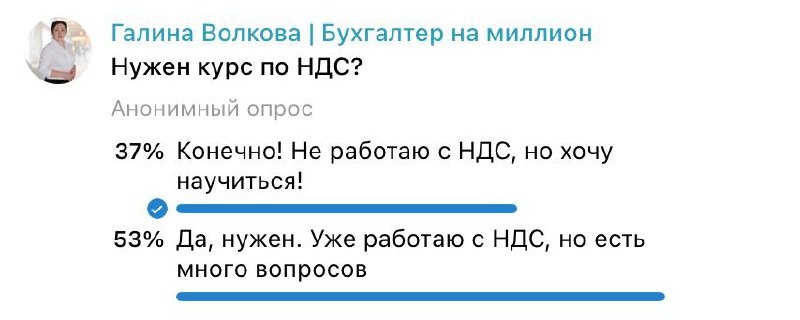 Коллеги, на прошлой неделе я проводила опрос, и 90% ответили, что вам нужен курс по НДС