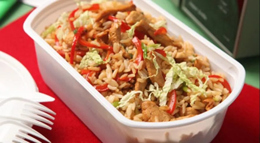 Жареный рис с курицей по-китайски — это потрясающе быстрое, аппетитное и питательное блюдо, не говоря уж о том, что очень простое. По большому счету, это палочка-выручалочка для очень голодных, а также хороший вариант «блюда с собой» — приготовил, положил в контейнер и взял на работу, а там быстро разогрел в микроволновке. Секрета у этого блюда два. Один в том, что оно готовится на основе «вчерашнего» риса, полежавшего в холодильнике. Второй секрет — в быстрой обжарке на сильном огне при постоянном помешивании. Взялся за вок — не отпускай до самого конца. Благо, что «конец» близок, а вок, кстати, легко заменяется на обычную сковороду с толстым дном.