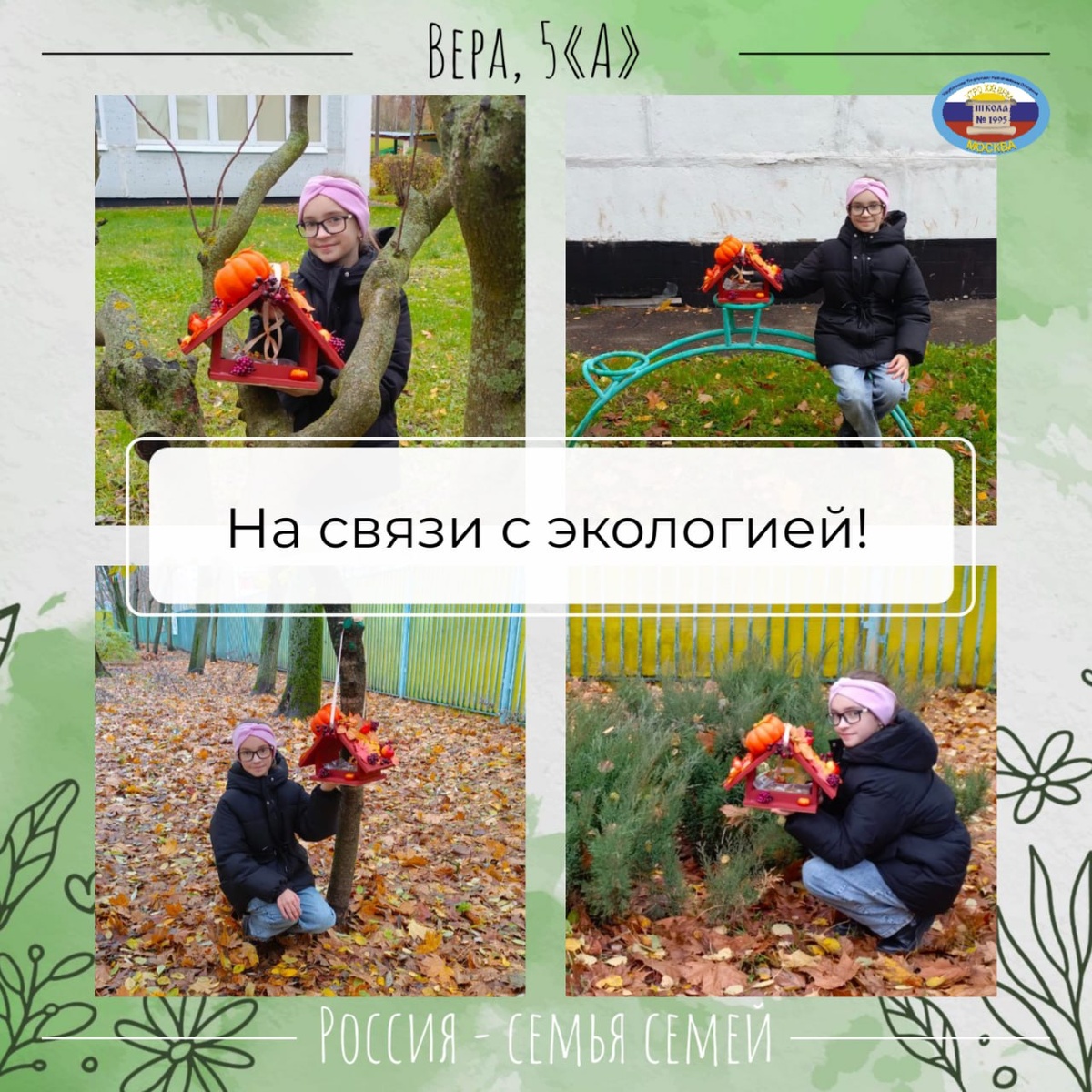История одного скворечника Вера и её родные присоединились к Всероссийской акции «Россия — семья семей»! В рамках направления «Экология вместе с семьями», формата «На связи с экологией» они создали настоящее произведение искусства — уютный домик для птиц. В работе над скворечником участвовали все: мама, папа, Вера и ее младшая сестренка. Теперь этот скворечник станет тёплым домом для пернатых обитателей микрорайона. Отличный пример того, как семейное творчество может приносить пользу природе! #ДОНМ #ШколыКолледжиМосквы #ЮннатыПервых #РоссияСемьяСемей #Школа1995