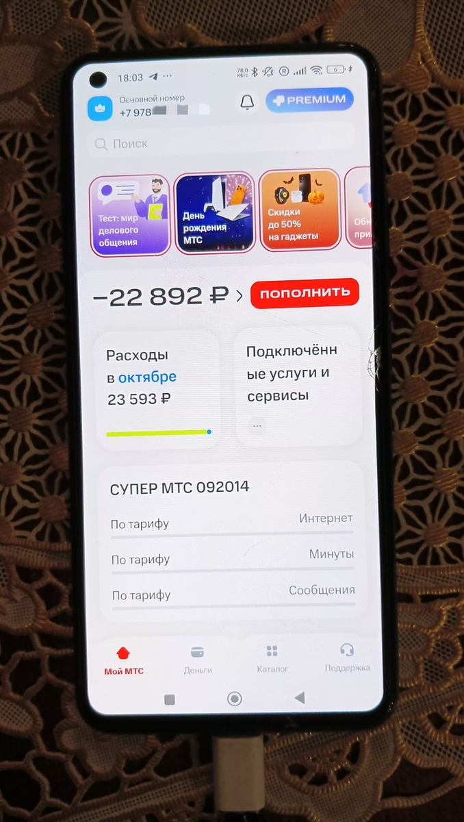 Здравствуйте! У моего дедушки случилась неприятная ситуация с МТС. . Он поехал на свадьбу к другой внучке в Саратов из Крыма, сим-карта МТС куплена в Крыму в 2014г сразу после перехода, соответственно, регион Краснодарский край. Тариф стоит нулевой – супер МТС. Интернетом пользуется обычно с вай-фаем, там ему обычно раздавала дочь и он смотрел видосики в вк/ютубе. Но, возможно, раздача иногда отключалась. По итогу этой недельной поездки у него образовалась задолженность в 22.892!! Каждые 5 мб интернета стоили ему 63, 72₽. Заметил он это, когда вернулся в Крым и пропала связь. Лимит одобренной задолженности у него, насколько я понимаю, указан 450₽, но не подключен, обычно при нулевом балансе услуги ему не оказываются, но тут дали накопить задолженность аж до 23к. Дозвониться на горячую линию не удалось, в чате ответили только, что в чужом регионе за задолженность услуги могут приостанавливаться в срок до 30 дней, поэтому вовремя и не перестали указываться услуги. Прекрасно понима