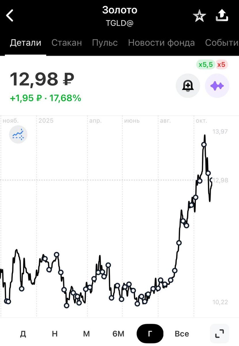 Прилетели #купоны на $RU000A10C3F4 Также продолжаю еженедельно докупать #фонд $TGLD@ на #иис , чтобы довести долю до планируемых 5% портфеля Сегодня цена выше средней на 20,65% - докупил 5 лотов #прояви_себя_в_пульсе