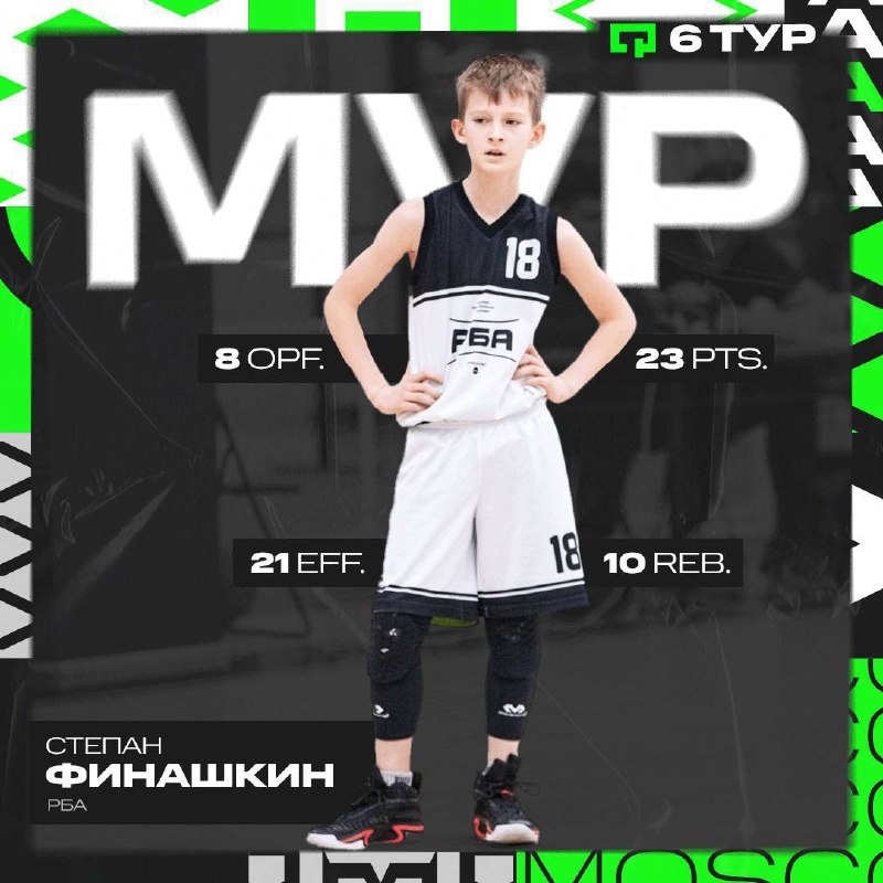 MVP Kids Финашкин Степан (РБА) vs MK Basketball 13/14, Квалификация, 6 тур 30:28 23 очка, 10 подборов, 8 фолов соперника, 21 эффективность РБА играли важный матч с MK Basketball без Дзвониского, так что большая часть ответственности за результат легла на плечи Финашкина. Степан набрал 12 очков за первые три четверти, но самое интересное случилось в концовке. РБА уступали 7 очков за 4 минуты до финального свистка, и тут Финашкин напомнил нам про сердце чемпиона. Степан набрал 8 очков подряд за 2 минуты и принёс своей команде волевую победу. 1️⃣@ABL Moscow