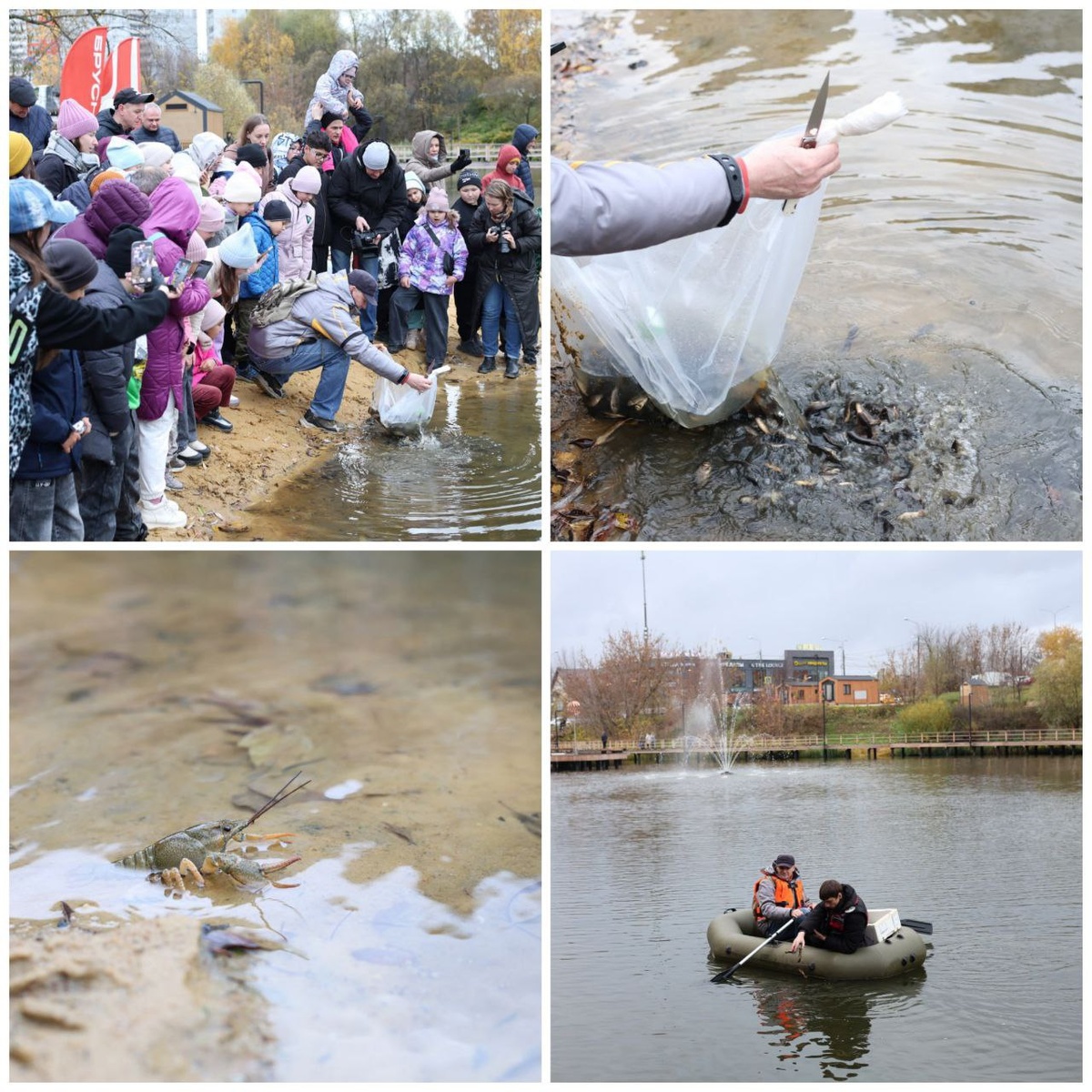 В пруд запустили более трёх тысяч новых обитателей: мальков белого амура, толстолобика, карпа с сазаном, золотого карася, вьюна и 500 раков.