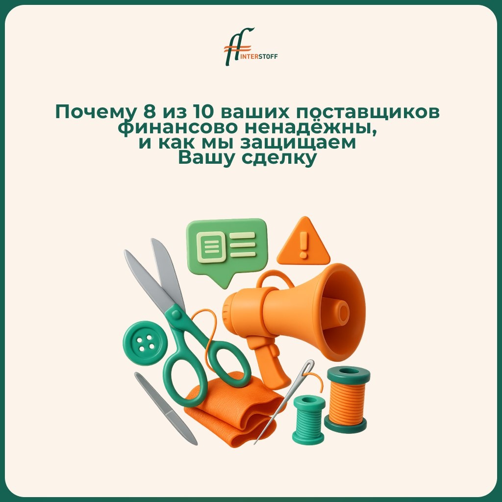 Отраслевая платформа для швейников Интерштофф проводит максимально возможный контроль этой проблемы на входе: Это не суровость — это снижение риска для вашего бизнеса. Важно понимать, что мы не можем гарантировать исключение всех случаев недобросовестного поведения, но применяем строгий отбор на входе. Одна из проблем швейного рынка — повышенный риск контрафактного товара. Поставщик продает вам "оригинальные" итальянские ткани, на деле это оказывается низкокачественный и дешевый продукт под видом премиум-класса. Контрафакт — это не просто обман. Это уголовная ответственность для вас. Если вы продадите одежду из контрафактного материала конечному покупателю, вы несете юридическую ответственность, не поставщик.