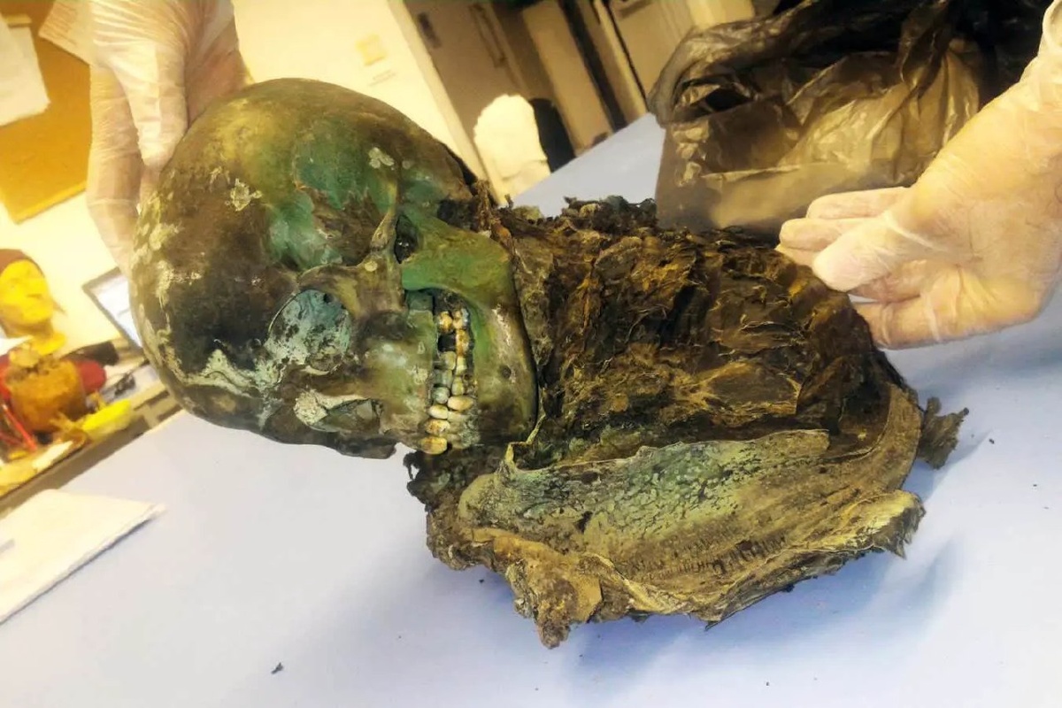 В Болонье обнаружен скелет подростка в медном гробу, который благодаря антимикробным свойствам меди и последующей реакцией с органическими кислотами был хорошо сохранен. Зеленый цвет останков обусловлен образованием патины и псевдомалахита. Трещина в гробу привела к вытеканию жидкости, что в сочетании с прохладной и сухой средой способствовало дальнейшему замедлению разложения. Исследование указывает на значительную роль металлов в сохранении древних останков.