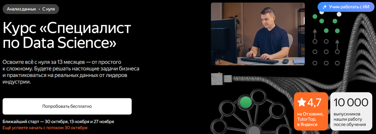 Data Science с нуля до Junior — обучение анализу данных и машинному обучению с трудоустройством