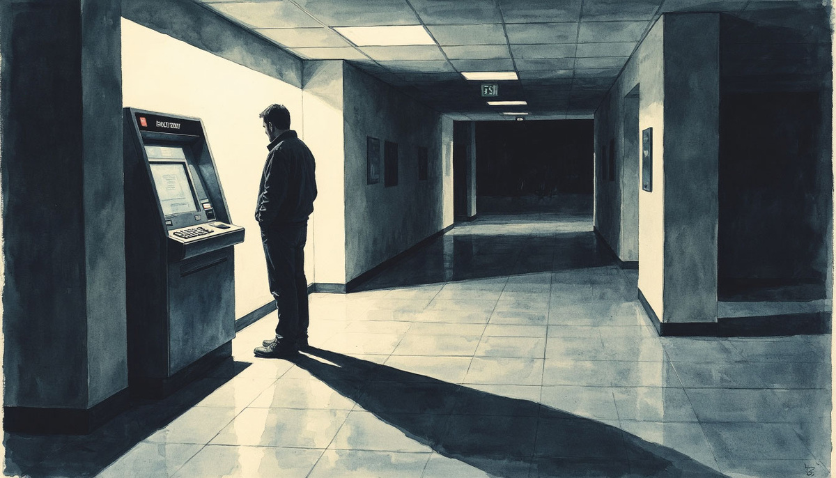 Загадочная мистическая история может произойти с нами не обязательно где-нибудь в глухих ночных глубинах отдалённой тайги, или на старом сельском заброшенном кладбище, непонятное может настичь нас в оживленном центре многолюдного города... ...Я стоял у банкомата в полупустом холле гипермаркета. Время близилось к вечеру, и редкие посетители уже спешили по своим делам. Мне нужно было внести наличность на счёт — обычная рутинная операция, не более. Вставив карту и выбрав нужный пункт меню, я достал пачку купюр. Экран банкомата дружелюбно подмигнул: «Пожалуйста, вставьте деньги в приёмник». Именно в этот момент я услышал шаги за спиной. Тихий, размеренный звук подошв по мраморным плитам. Я терпеть не могу, когда кто‑то стоит прямо за моей спиной и дышит в затылок, пока я провожу операции с банкоматом. Это инстинктивное напряжение — будто ты внезапно становишься уязвимым, открытым для любой неожиданности. Я замер, держа купюры в руке. Шаги приблизились, стали чуть громче, затем затихли букв