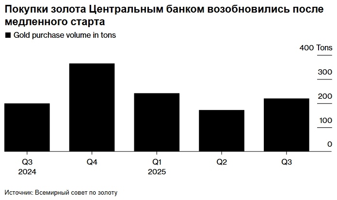 Центральные банки ускорили закупки золота в третьем квартале на 28%, приобретя 220 тонн. За год резервы выросли на 634 тонны. WGC прогнозирует закупки в 2025 году от 750 до 900 тонн из-за геополитической напряженности, инфляции и неопределенности в торговле. Центральные банки значительно увеличили закупки золота в третьем квартале, что стало следствием рекордно высоких цен и стремления использовать слитки как инструмент хеджирования против уязвимости доллара США. Согласно данным Всемирного золотого совета, в период с июля по сентябрь центральные банки приобрели 220 тонн золота, что на 28% превысило показатель предыдущего квартала и позволило преодолеть тенденцию к замедлению, наблюдавшуюся в начале года. Национальный банк Казахстана стал крупнейшим покупателем, а Центральный банк Бразилии возобновил закупки впервые за более чем четыре года. За полный год, завершившийся в сентябре, резервы центральных банков пополнились на 634 тонны золота, что меньше, чем в аналогичные периоды последни