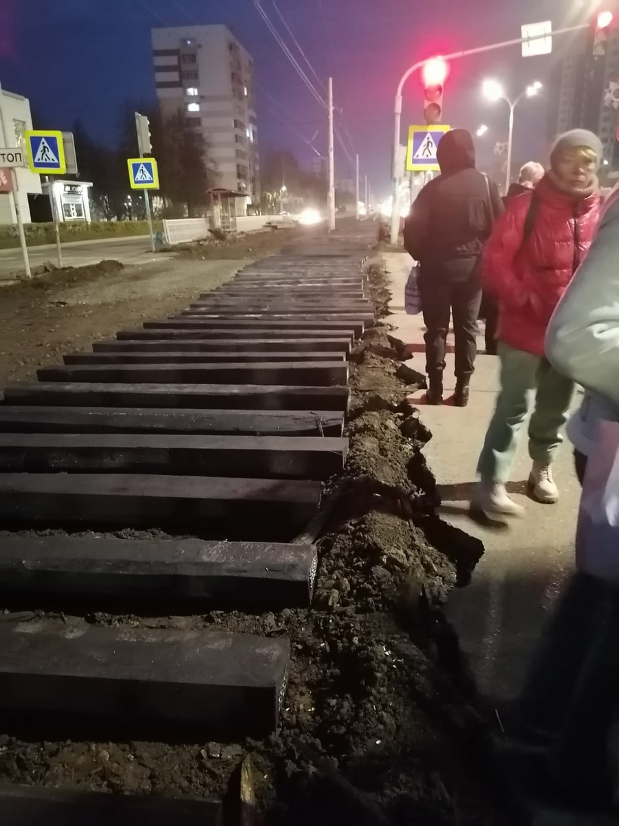 🚧 В Челнах начали капитальный ремонт трамвайных путей на остановке «Парк культуры» С 20 октября работы по обновлению путей стартовали, и уже сейчас остановка практически исчезла с привычного места. Шпалы уложили прямо в метре от дороги, а дальше планируется засыпка щебнем. 😟 Сейчас людям приходится буквально стоять «на струночке», чтобы не попасть под колёса трамвая и автобуса — пространство между движущимся транспортом и людьми очень узкое (около 120 см). 🛑 Жители просят оставить хотя бы минимальную безопасную зону для ожидания транспорта, чтобы избежать несчастных случаев. 😃 Подписывайся на most| Набережные Челны | Пришли свою новость