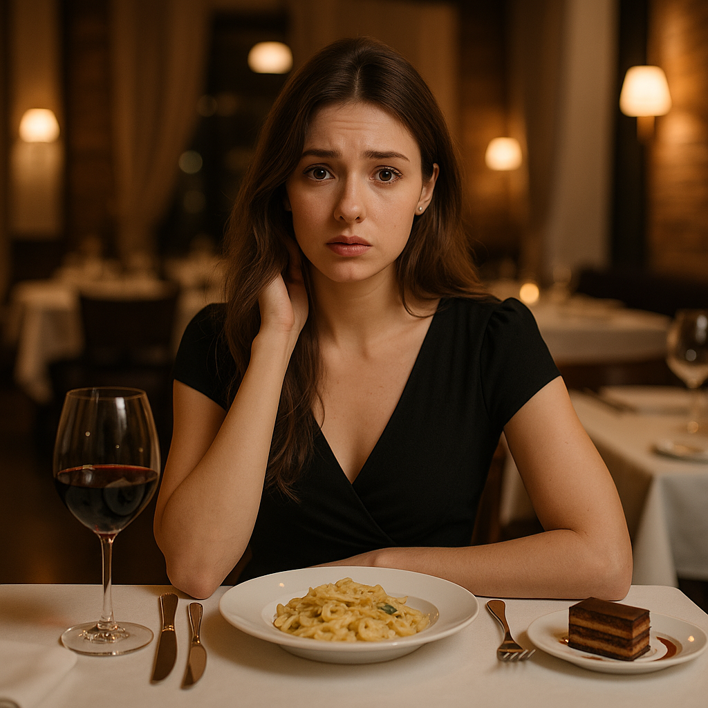 И вот ты сидишь, в платье, с бокалом вина, с глазами, полными слёз, и понимаешь, что тебя просто бросили.