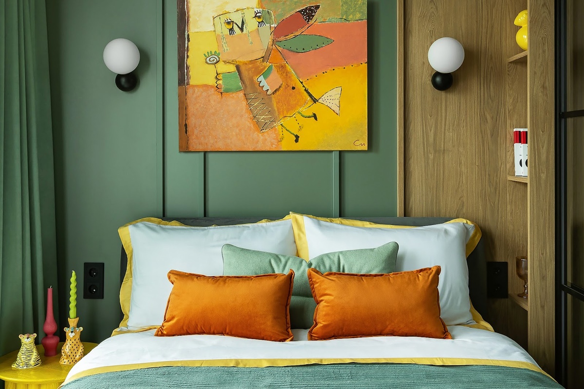 - Яркий, но легкий интерьер, без ощущения перегруженности.