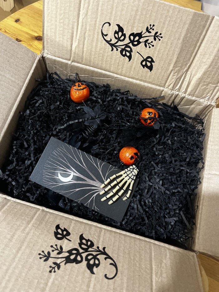 Скажу сразу: Я получила жутко классную посылку! У меня День Рождения в ноябре, я раскрывала и чувствовала как будто бы он уже наступил)) Начать хочу с того, что милая Екатерина (отправитель) просто мега оперативно отправила подарок и он пришёл просто как-то невероятно скоро! Вот это да! Я, получив уведомление, понеслась на почту как только смогла и забрала весьма увесистую коробку. Моему любопытству просто не было предела! Когда же я смогла распаковать подарок, я обалдела! Классное оформление, упаковка, идея посылки - я прямо до визга обожаю такое!!! Но дальше, дальше: когда я подняла открытку, я не поверила своим глазам: там лежала птица! Ааааа!!! Я прямо заорала от восторга мужу в другую комнату: «Дохлая, на хрен, птица!! Блин, ааа!!! как это круто!!!:))))) Так это по хеллоуински и по идее посылки, это ващеее просто)) Я уже была в восторге, дальше, в целом, можно было не продолжать)))) Подуспокоившись от птицы (а это было не скоро) я стала рассматривать свои сокровища дальше. В посыл