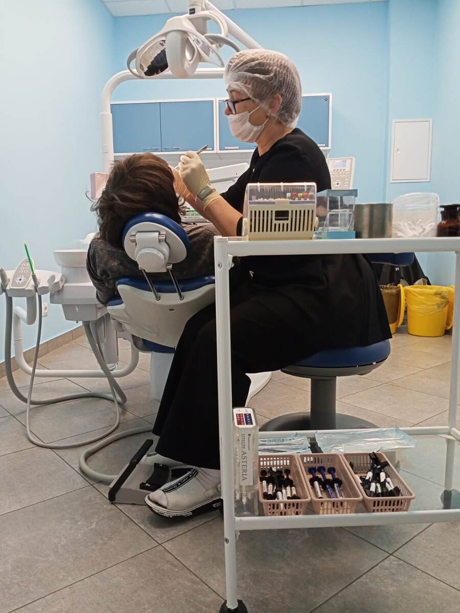 Из понятного мне хитрого действия, которое совершила врач, это она спросила его чистил ли он зубы, на что Гриша сказал, что да, чистил. Она ему сказала, что сейчас тоже почистит ему зубы воздухом. И да, почистила. А потом показала, что сменит шарик и ещё почистит. Я так сильно боялась, что даже не поняла, что это она бормашиной уже "чистит зубы". А Гриша лежит. Всё произошло так быстро, что, когда она начала мешать раствор, я поняла, что всё... всё... Гриша впервые в жизни в сознательном состоянии полечил зуб. В 16 лет.