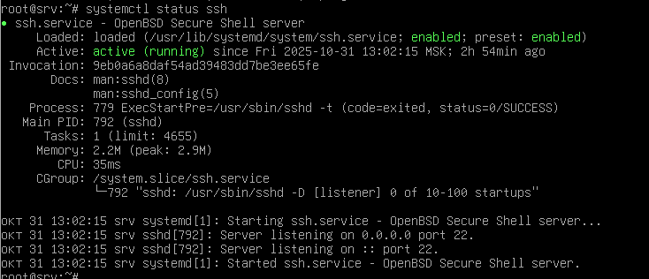 🔹 Практическая часть: Установка и настройка SSH на Debian