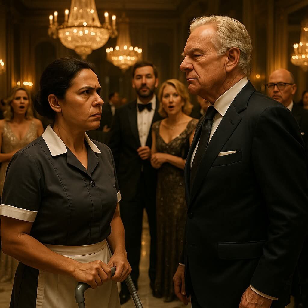 Весь зал оживился. Смех на мгновение затих — никто не ожидал, что эта простая женщина в уборщицкой форме осмелится бросить вызов самому могущественному человеку города с такой убеждённостью. Даже Хулиан, сын магната, поднял глаза, заинтригованный.
