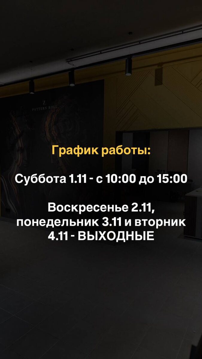 График работы на праздники: Суббота 1.11 - с 10:00 до 15:00 Воскресенье 2.11, понедельник 3.11 и вторник 4.11 - ВЫХОДНЫЕ! По всем вопросам пишите @RDeco40 👈