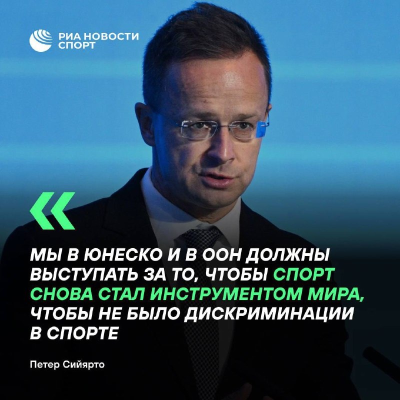 👍🏻 ЮНЕСКО должна «восстать» против политической дискриминации в спорте Об этом заявил министр иностранных дел и внешнеэкономических связей Венгрии Петер Сийярто. По его мнению, спортсмены не должны выступать с политическими заявлениями и только их личные показатели должны служить основой для решения об их квалификации. #спорт #ЮНЕСКО