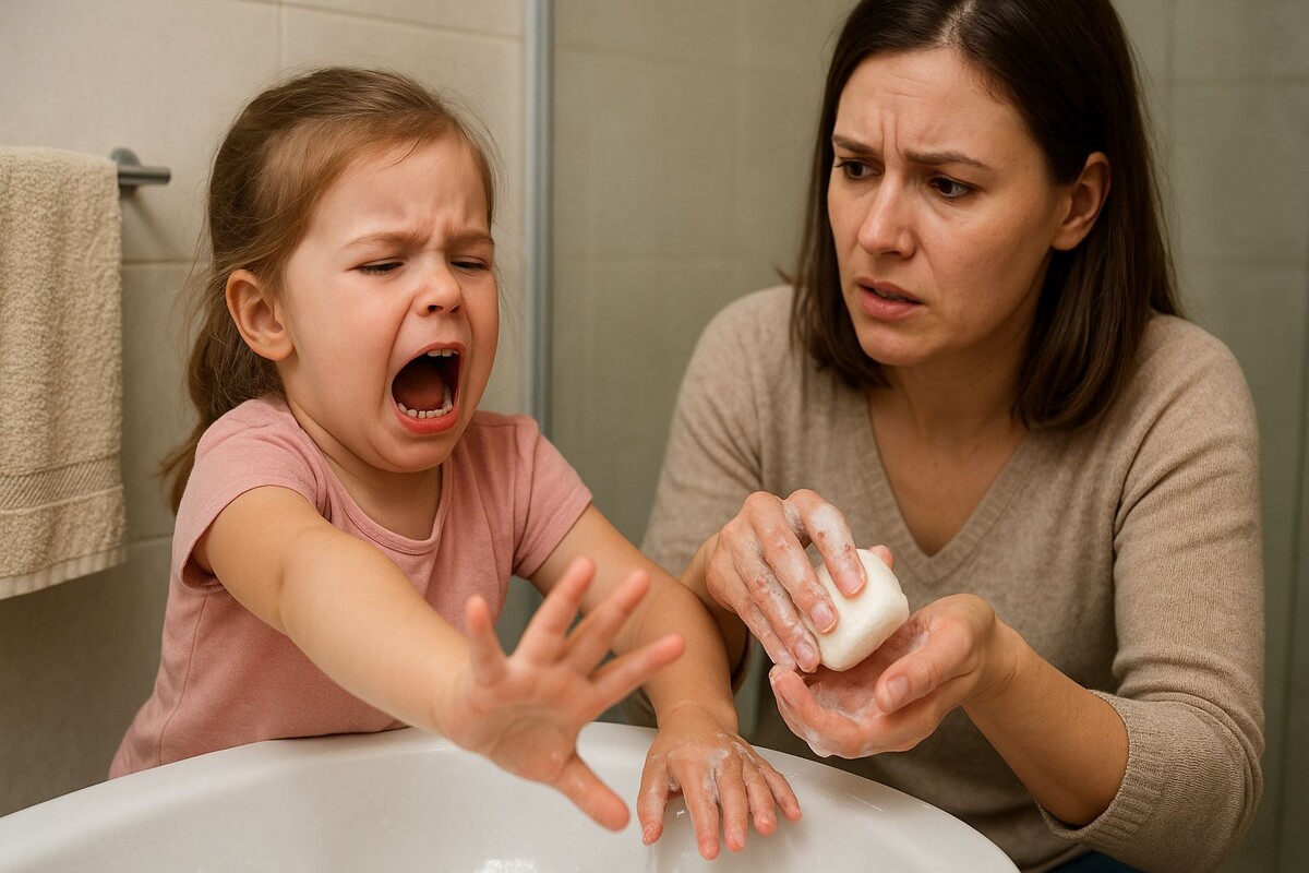 Так начинается ежедневная борьба за чистые ладошки, в которой ребёнок будто отстаивает что-то большее, чем просто нежелание касаться воды.