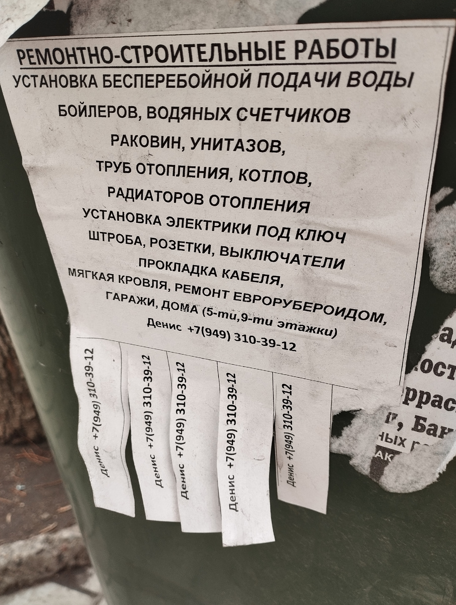 Если сейчас пройти по одной из главных автомагистралей Донецка, первым делом бросается в глаза огромное количество объявлений, которые наклеены повсюду. Кстати, недавно было одно из них, предлагающее людям разных возрастов, включая пенсионеров, зарабатывать, расклеивая объявления на улицах. А вчера как раз впереди меня шла девушка с пачкой листков бумаги в одной руке и бутылочкой клея в другой. Она очень старалась, не пропуская ни одного щита на остановках общественного транспорта или на стенах у подъездов. Впрочем, помимо специально предназначенных мест, постоянно расклейщики осваивают новые. Те, что просто решили завалить Донецк шубами из Пятигорска: придумали на столбах крепить картонку со своей рекламой и в почтовые ящики её запихивать, пользуясь тем, что домофоны у нас практически во всех домах давно отключили. Так теперь на этих картонках на столбах конкуренты свои объявления клеят. Ну, а то, что на заглавном фото, наклеено на контейнере для мусора, установленном напротив магаз
