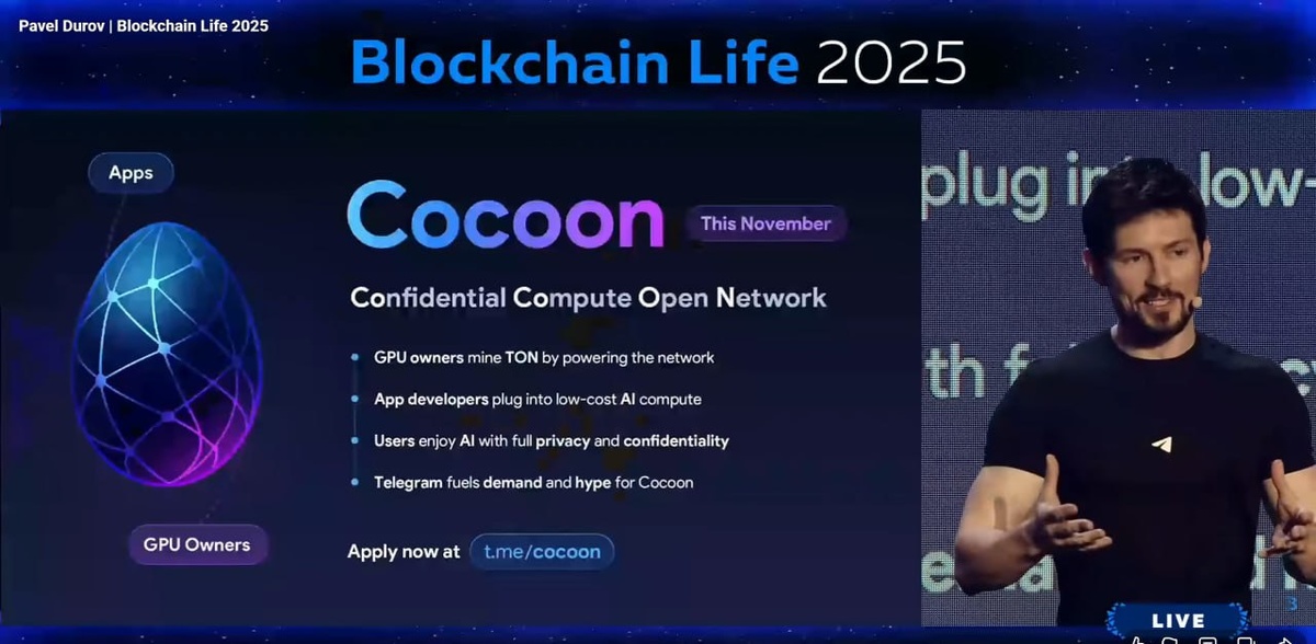 Там Паша анонсировал запуск платформы Cacoon, на которой народ может расшаривать мощности своих GPU и получать вознаграждения в TON