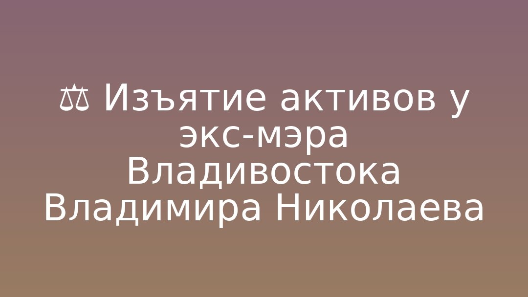 Ленинский районный суд Владивостока удовлетворил новый иск Генеральной прокуратуры об обращении в доход государства имущества экс-мэра Владимира Николаева и соответчиков на сумму свыше 1 млрд руб. В иске указаны 12 соответчиков-физлиц (в том числе Раиса Николаева) и 10 организаций; взысканы доли в уставном капитале компаний, акции и объекты недвижимости. Это второй подобный иск: в июле были изъяты более 800 объектов имущества и 590 млн руб., в том числе развлекательный комплекс «Роял Парк», ЖК «Магнум», отель «Достоевский», около 25 помещений во Владивостоке и свыше десяти земельных участков в Приморском крае и Московской области.