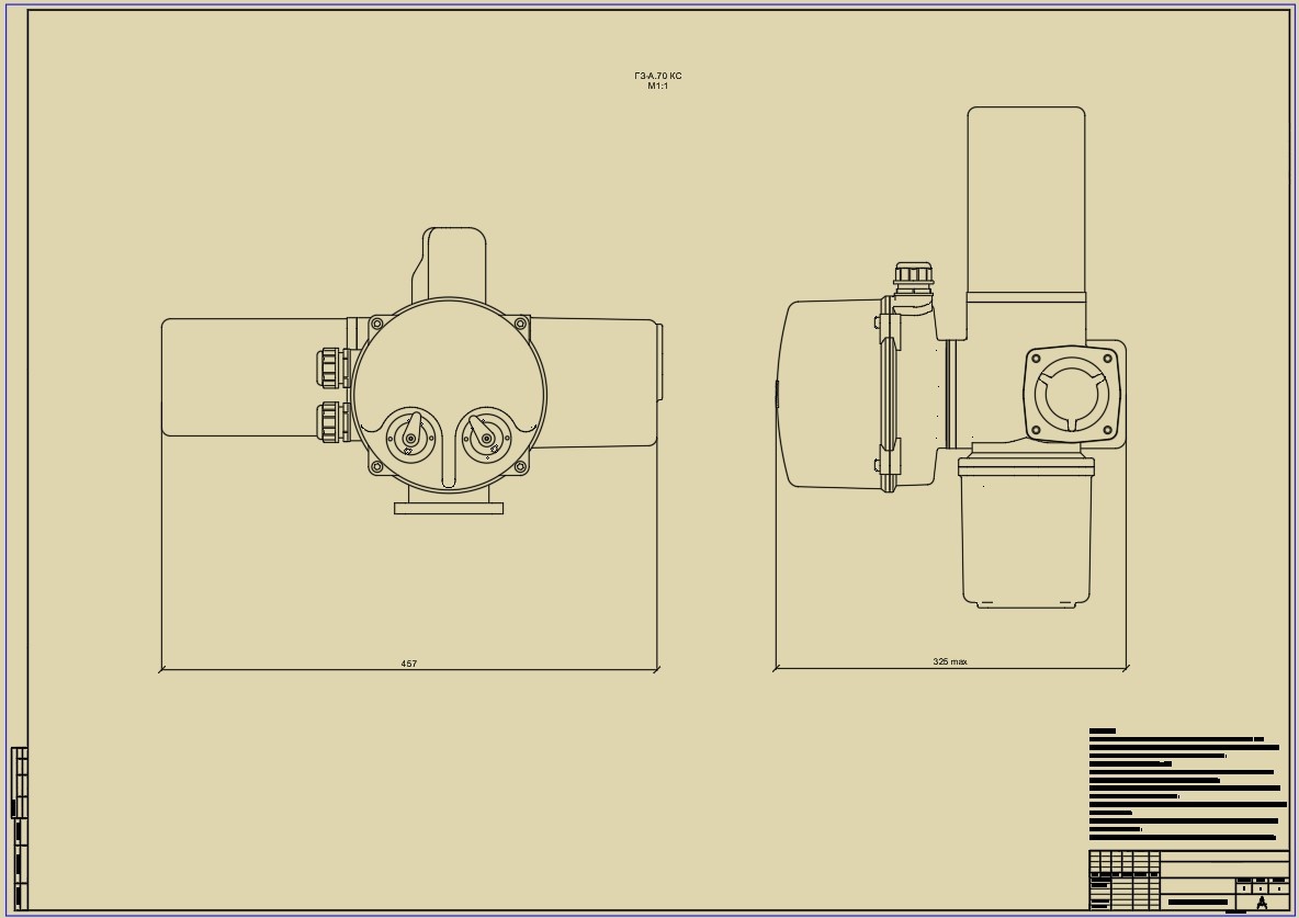 Электропривод ГЗ-А.70 КС предназначен для управления запорно-регулирующей трубопроводной арматурой (задвижками, клапанами, затворами) в системах автоматического регулирования технологическими процессами. Он обеспечивает дистанционное или ручное управление, сигнализацию положений арматуры и защиту от перегрузок. gz-privod.ru +1 Основные характеристики · Номинальный крутящий момент: 70 Н·м. gz-privod.ru +1 · Напряжение питания: трёхфазная сеть 380 В, 50 Гц. gz-privod.ru +1 · Частота вращения выходного вала: 12 об/мин (стандарт), возможно 18 об/мин по заказу. gz-privod.ru +1 · Настраиваемое число оборотов вала для закрытия/открытия арматуры: от 1 до 26 оборотов. gz-privod.ru +1 · Степень защиты: IP65. avrora-arm.ru +1 · Климатическое исполнение: по ГОСТ 15150 (У1, УХЛ1, Т1). avrora-arm.ru +1 · Рабочий диапазон температур: от -30°C до +70°C (У1), от -60°C до +60°C (УХЛ1), от -10°C до +65°C (Т1). avrora-arm.ru +1 · Мощность электродвигателя: 0,18 кВт. gz-privod.ru +1 · Номинальный ток: 1,2