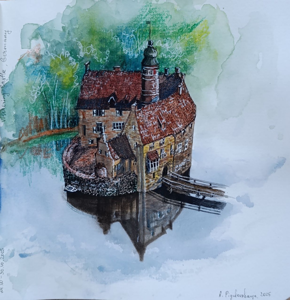 . 190х190 mm paper (Sketchbook), isograph, watercolors, gel pen, oil pastel . Vischering Castle, Lüdinghausen, Germany Замок Фишеринг, Лудингхаузен, Германия . Случайно наткнулась на этот замок в интернете. И вот теперь, я хочу там побывать. Ну а пока, решила его нарисовать - визуализирую трип😉 И да, промежуточный вариант мне прям очень зашёл. Т.к. в финальном варианте пропала вся готика (больше похож на иллюстрацию к детской книге). Но ничего, такое случается) . P.S. немного истории для затравки) замок основан в XIII веке. Неоднократно перестраивался. А дальше сами) . #art #artwork #artist #Germany #sketching #watercolors #sketch_daily #streetart #illustration #illustrator #design #gallery #artgallery #town #picture #sketch #sketchbook #художник #искусство #иллюстрация #акварель #sketchoftheday #sketchaday #oldtown #castle #port #street #architecture #архитектура #apigulevskaya_art