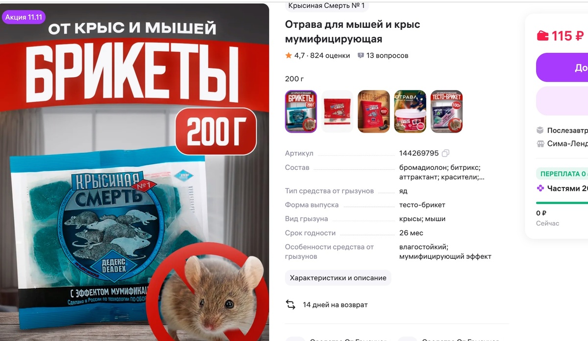 27 октября - 2 ноября 2025 года Думала, что на дачу больше не поедем. Холодно, мокро и грустно там уже. Но нет. Поехали снова. Мужу нужно было сменить у машинки колеса на зимние, а они у нас хранятся на даче в подполе. А я просто за компанию поехала, вспомнила, что на даче у нас остались три кабачка и несколько капустин, надо их переработать. Оставлять на всю зиму на даче не хотелось по той простой причине, что к нам пожаловали незваные гости - мыши. Пока их следы заметили только в подполе. Он у нас бетонный, но, видимо, где-то ход проделали. Овощей в этом году в подполе нет, только немного банок с заготовками на зиму. Но плошки с отравой я мышам все-равно оставляю двух видов: влажные брикеты и сухую отравленную зерновую смесь. Брикеты оказались только со следами острых зубов, а зерновую смесь съели почти всю. Так что срочно обновила ассортимент блюд в мышиной столовой. И сразу же заказала еще отравы на будущее. Вот такие, их уже покупала раньше. Пусть лежит, у нее срок годности -