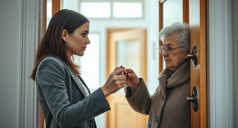 Свекровь попыталась вставить свой старый ключ в замок и обнаружила, что он не подходит. Её лицо исказилось.
