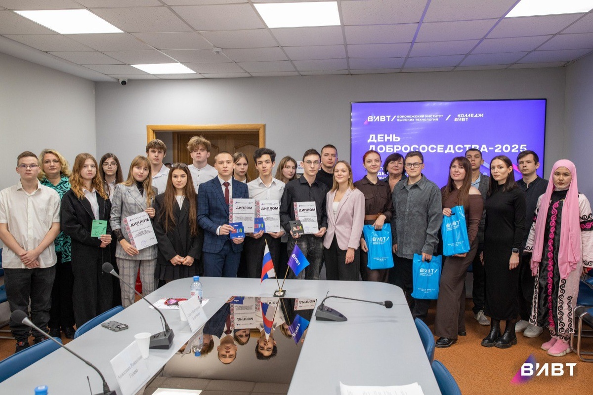 В преддверии Дня народного единства 30 октября в Воронежском институте высоких технологий состоялся ежегодный творческий конкурс «День добрососедства-2025», в которым приняли участие студенты вуза и колледжа. Рассказы о своей малой родине, стихотворения о дружбе народов, костюмы – ребята основательно подготовились к конкурсу и подарили нам яркие выступления. Оценивало конкурсантов компетентное жюри, в состав которого вошли 4 человека: Ольга Викторовна Курочкина, заместитель по учебной работе руководителя департамента по работе со студентами; Анжелика Романовна Голева, руководитель регионального центра «Воронеж. Волонтёры культуры», председатель молодежного совета Министерства культуры Воронежской области, выпускница ВИВТ 2023; Дария Константиновна Кононыхина, секретарь Воронежской Региональной краеведческой просветительской общественной организации "Наша история, руководитель проекта "Школа исторической грамотности"; Дмитрий Вадимович Завирюхин, политолог, лектор Российского общества