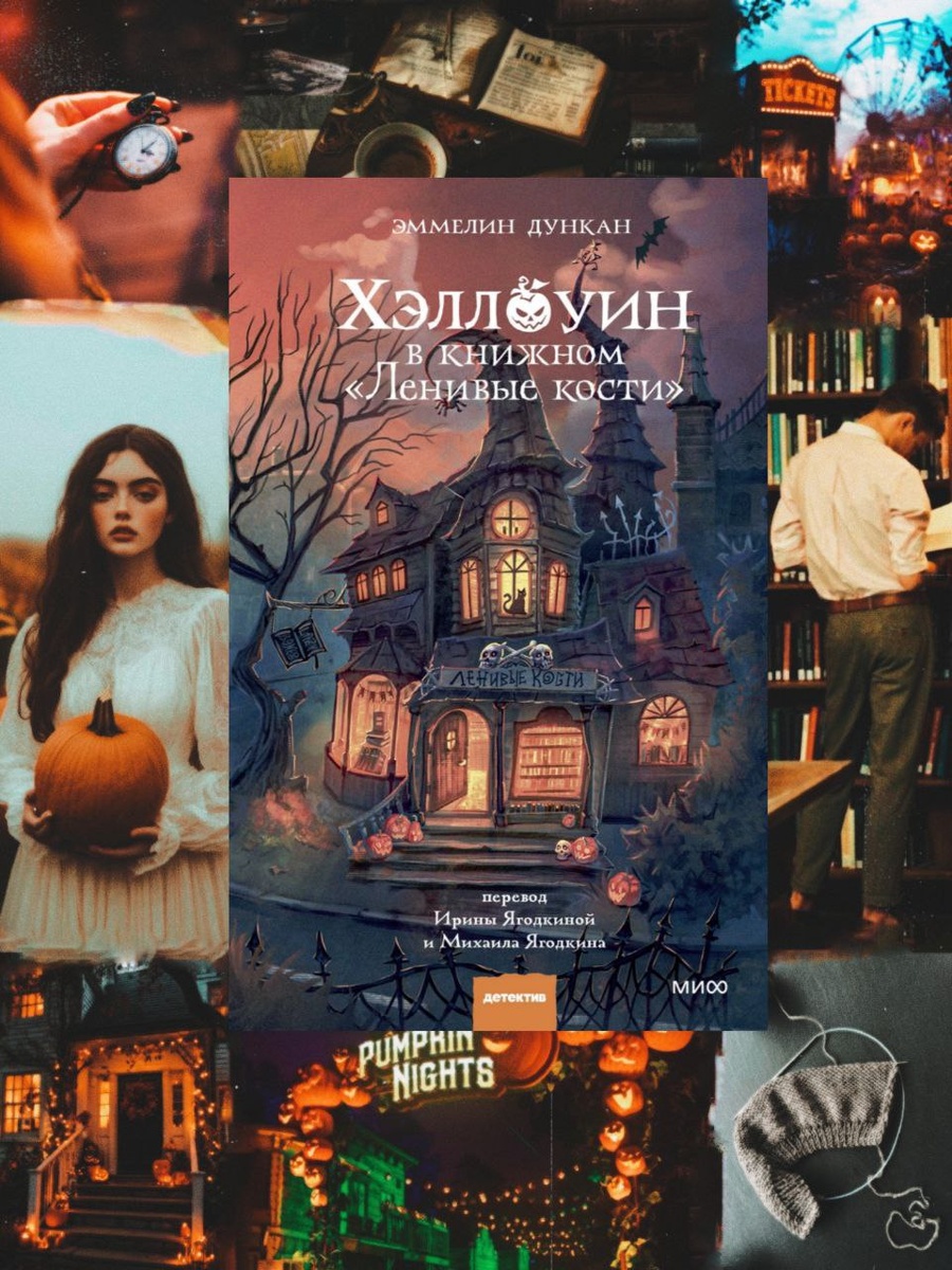 Не скажу, что это лучшее, что можно было бы прочитать в Хэллоуин, потому что книга шаблонная и плоская. Но если вы любите уют и отсутствие некоторой логики в поступках героев, то можете смело окунуться в историю. Городок Элиан‑Холлоу прославился после съёмок культового фильма ужасов — и с тех пор живёт в режиме вечного Хэллоуина, принимая туристов круглый год. В преддверии очередного праздника сюда приезжает съёмочная группа популярного реалити‑шоу об охоте на привидений. Первой локацией нового сезона становится книжный магазин «Ленивые кости». Его хозяйка, Бэйли Бриггс, занята подготовкой к тематическому литературному фестивалю. Но праздник омрачается загадочным убийством — и все улики неожиданно указывают на саму Бэйли. Чтобы вернуть себе доброе имя, она вынуждена начать собственное расследование. Очень скоро город Хэллоуина откроет ей свои самые мрачные тайны… Итак, начну с того, что обложка и аннотация обещали мне уютный осенний детектив с атмосферой Хэллоуина и книжного магазина