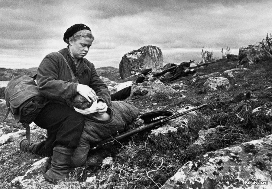 Было, конечно, трудно. Со мной вместе оказывали помощь девочки девятнадцати, двадцатилетние санитарки. Которые даже стояли на посту с винтовкой ночью в пургу. А все, кто был на Рыбачьем, знает, что там почти каждый день метёт пурга. Были обморожения и рук и ног. И всё-таки мы никогда не жаловались на судьбу. Мы собирали все силы, потому что это нужно было Родине…».