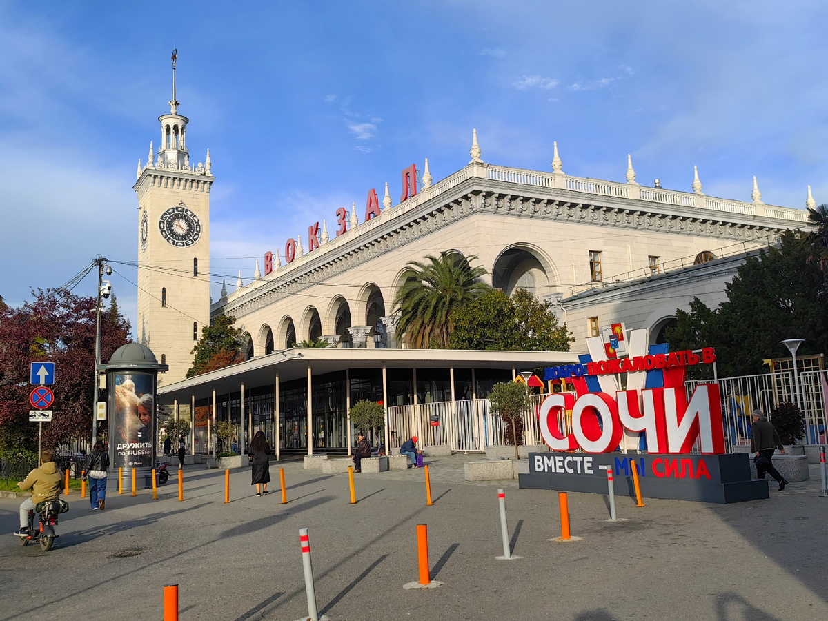 Наша первая остановка, и мы в Сочи. Солнце, море, а главное -: тепло, 18 градусов на улице, все это мотивирует на прогулки. Ведь не секрет, что Сочи является главным курортом страны. А учитывая, что Сочи - город с самой длинной пляжной полосой в мире (длина пляжей составляет 118 километров! ), и я не устоял, все-таки залез сегодня и в море. Водичка бодрит, а от этого настроение поднимается еще больше. Официальная летопись Сочи, как единицы в составе Российской империи, начинается с 1838 года. Именно тогда на побережье Черного моря был основан форт Александрия. Современное название будущий курортный город получил в 1896 году благодаря протекающей в этой местности одноименной реки. Однако это не значит, что обласканный морем и солнцем участок земли до этого пустовал: предполагается, что первые люди проникли в окрестности Сочи через Колхиду из Малой Азии 400-350 тысяч лет назад, то есть в эпоху раннего ашёля. Первый курорт в Сочи, «Кавказская Ривьера», открылся в далёком 1909 году. В 194
