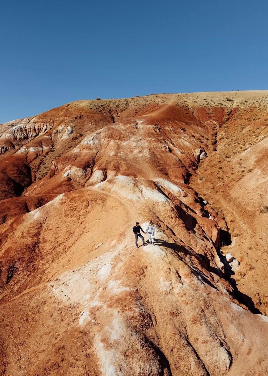 🇷🇺«Марс» на Алтае, где можно гулять по дну древнего моря 📍 50.060078, 88.296062 Место на карте История этого места уходит в глубину миллионов лет. Учёные считают, что когда-то здесь плескалось доисторическое море, существовавшее около 90 миллионов лет назад. Сегодня «Алтайский Марс» хранит отпечатки его древнего дна Необычные цвета холмов объясняются богатым составом пород: 🟡 хром придаёт склонам жёлтые тона, 🔴 железо окрашивает их в красный, 🟣 марганец добавляет сиреневых и розовых оттенков. Песок, глина и известняк сформировали плавные линии рельефа, а ветер и вода довершили картину Высота этих «марсианских» холмов — почти 2000 метров над уровнем моря. Здесь почти нет растительности — только ты, небо, ветер и бесконечный космос вокруг👽 Фото: aleksandr_danadoev Большая Страна | Подписаться