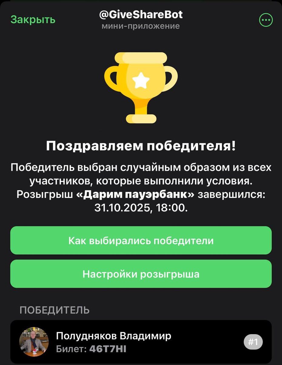 В ответ на пост 🥳 У нас есть победитель! Дарим пауэрбанк Полуднякову Владимиру. Он выполнил все условия розыгрыша и теперь станет счастливым обладателем полезного подарка от «КП-Петербург». Читай нас в MAX! | Подпишись на Комсомольскую правду: СПб