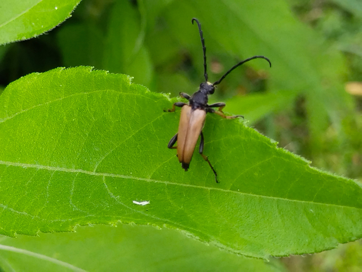 Смотри какой жук забрался на листик. Это как жук из Алисы в стране чудес. Хотя я не помню чтобы там был жук. Добрый друг-жук. Пришел в гости. Это было лето. Лето 2025. На листе сидел жук. Сидел и смотрел чтобы он такое интересное может поделать. Я ходил по саду. И просто отдыхал. Что такого интересного растет тут. А там. Трав тут и там. Зеленая. После долгой зимы – так здорово видеть – все зеленое. Жук! Смотри какой интересный жук тут оказался. Он совсем не против фотографий. Жук длинный. И с такими огромными усами. Он немного – как кора. И черного цвета еще. Какой необычный жук. Подумал я! Веселый и добрый друг. На огромном зеленом зеленом листе сидел. Такой яркий зеленый цвет! Под солнцем все становится зеленым и ярким. А жук – совсем другого цвета. Так я его и нашел. Жук скорее серый. И лист зеленый. Такой как лодочка. Усы, антенны, жук наверное может по радио слушать что-то интересное. Прямо на листе. На то и классные антенны. Жук залез повыше, чтобы поймать интересную радиостанцию