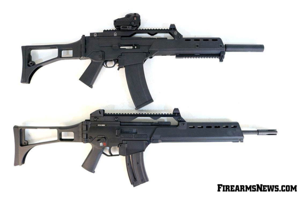 Копия G36 на фото сверху на самом деле не является Ruger 10/22 в комплекте с набором для преобразования Archangel. Нижняя винтовка – HK G36 под калибр .22