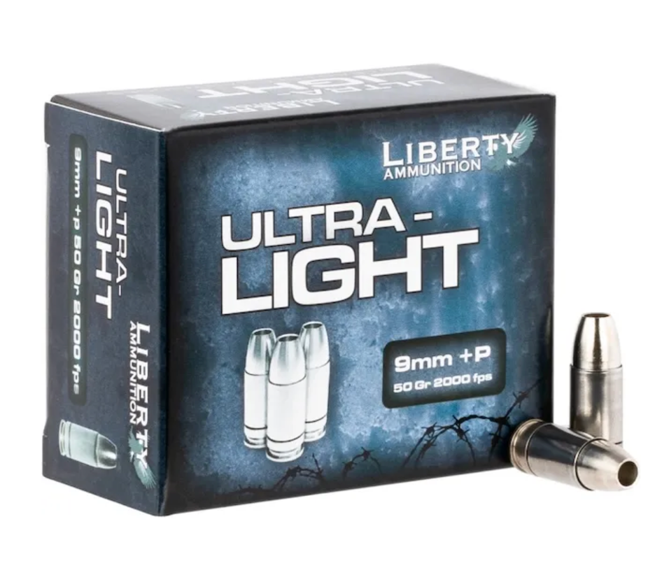 Самая легкая пуля, которую мне удалось найти в производстве для 9-мм патрона, — это 50-грейновая пуля от Liberty Ammunition. Такие сверхлегкие пули снаряжаются навесками +P и экспансивными пулями для самообороны. Эта высокоскоростная пуля развивает скорость 2040 футов в секунду (621,7 м/с) у дульного среза, создавая энергию 462 фут-фунта (0,62 кДж). Существует также версия для самообороны с фрагментирующимися медными экспансивными пулями, предназначенными для максимального повреждения тканей и формирования серьезного раневого канала. Впрочем, обе пули отлично подходят для самообороны.