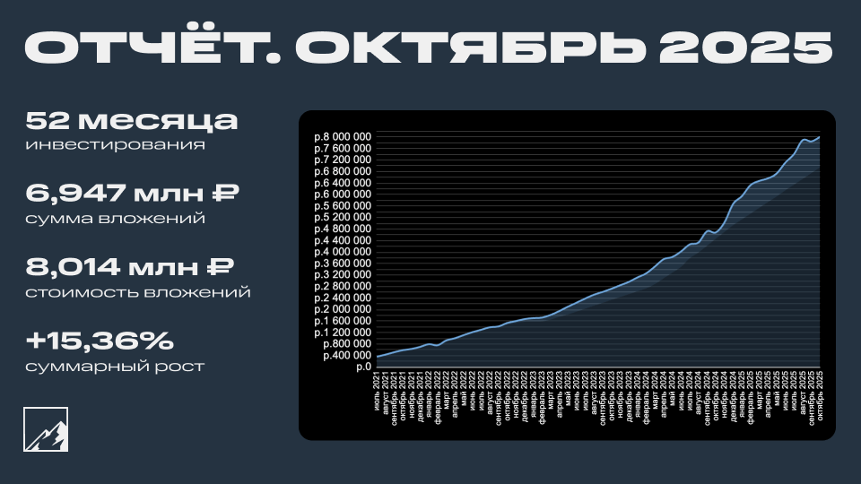 1 ноября, значит пора искать зимний пуховик и подводить итоги октября. Ежемесячно я пишу отчёт о том, что произошло с моими инвестициями. Напоминаю: старт был в июле 2021. Погнали!