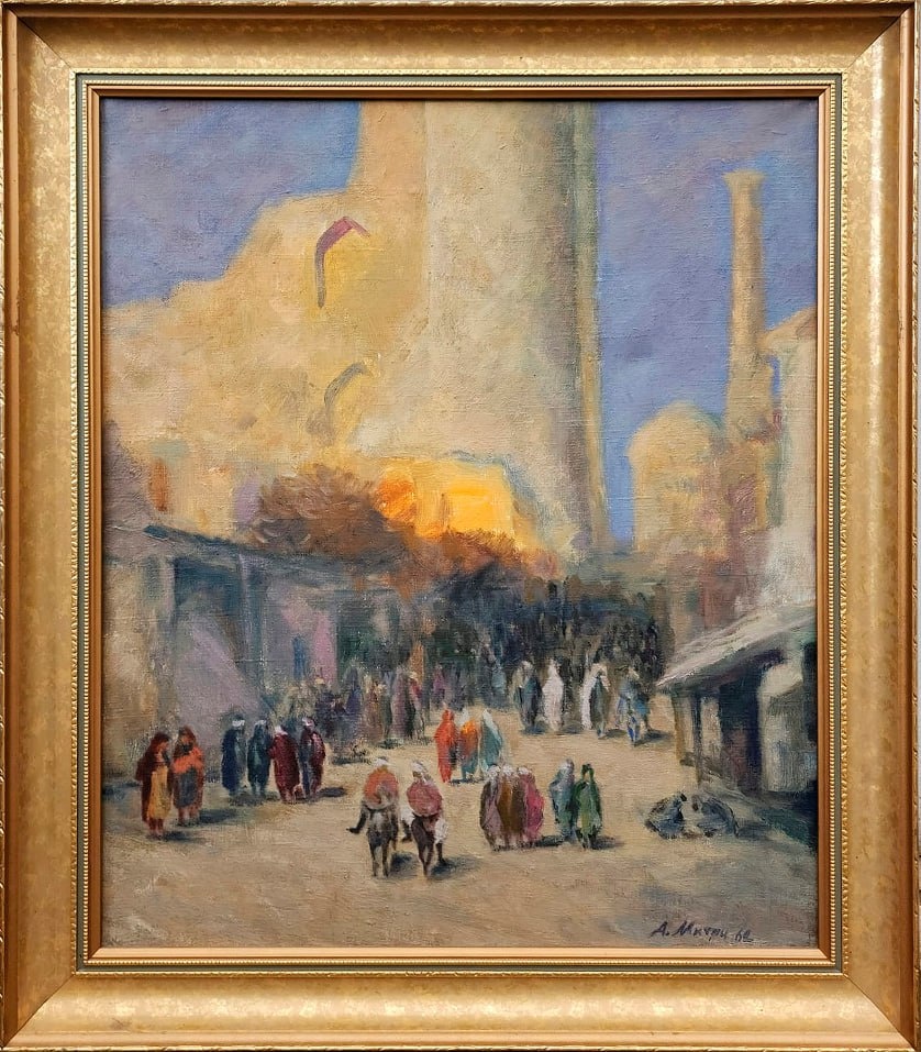 Представленное на новом аукционе Art Globe Полотно «Самарканд. Базар» (1964) кисти Александра Мичри (1934–2021) - произведение, способное стать украшением любой серьезной коллекции. Эта работа, относящаяся к среднеазиатскому периоду творчества художника, представляет особый интерес для ценителей русской живописной школы XX века. Художник мастерски уравновешивает динамику многолюдной сцены, создавая гармоничную и целостную композицию. Взгляд зрителя невольно следует за движением толпы на рыночной площади, утопающей в солнечном свете. Виртуозно передано ощущение знойного воздуха, который словно плавит контуры предметов, делая их почти осязаемыми. Мичри использует характерную для импрессионизма технику – быстрый, энергичный мазок, который позволяет ему запечатлеть мимолетное состояние природы и света. Созданная в 1964 году, картина является ярким воплощением «туркменского» этапа в биографии художника. После окончания прославленной Строгановки Александр Мичри, по собственному желанию, о