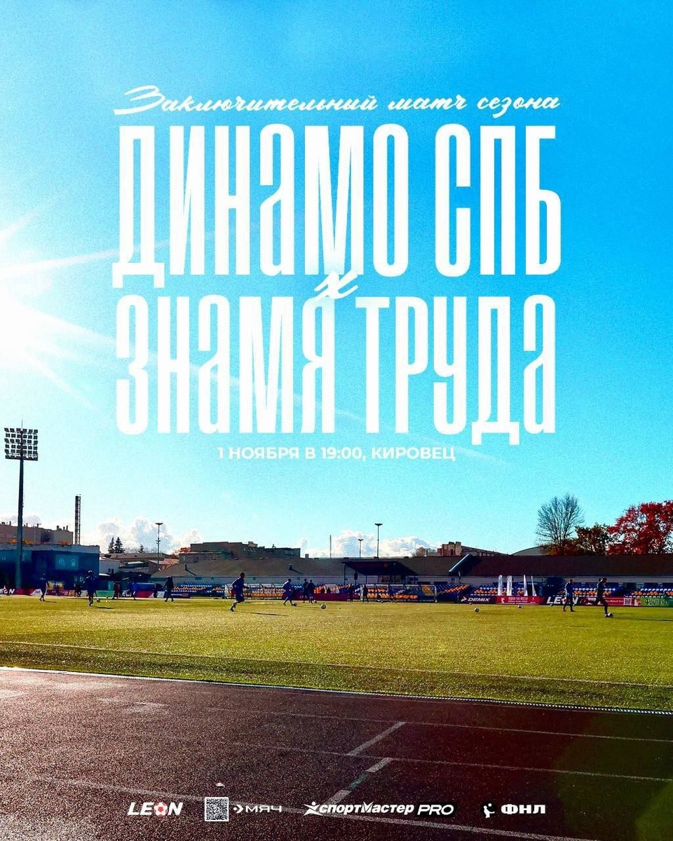 ⚪️🔵 В субботу, 1 ноября, петербургское «Динамо» проведёт заключительный матч сезона 📍 Игра против «Знамени Труда» пройдёт на стадионе «Кировец» и начнётся в 19:00. Интересные факты перед встречей: 🔵Предстоящий матч станет последним в карьере полузащитника динамовцев Николая Шикова, которому сегодня исполнилось 38 лет. 🔵«Знамя Труда» в последних трёх встречах не потеряли ни одного очка. 🔵У динамовцев победная серия на матч длиннее и составляет четыре игры с невероятной разницей забитых и пропущенных – 19:1. 🔵Нападающий гостей Владислав Морозов за половину сезона наколотил уже 12 мячей в рамках первенства Второй лиги Б и забивал практически в каждом матче в составе «Знамени Труда». Не пострадали от форварда лишь две команды из двенадцати – «Чайка» и «СКА-Хабаровск-2». 🔵Накануне встречи СМИ активно распространяют информацию о возможном бойкоте команды из Орехова-Зуева. Однако несмотря на длительные задержки по зарплате, команда приехала в Санкт-Петербург и готова дать бой бел
